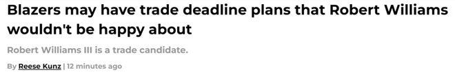 北京時間12月8日,據(jù)NBA名記Jake Fischer報道,相較于上賽季,開拓者預(yù)計會在2月6日交易截止日前,更愿意送走羅伯特-威廉姆斯。Fischer在文中寫道:“據(jù)我所知,開拓者本賽季對交易羅伯特-威廉姆斯的意愿要高于上賽季,那時候球隊還為這位傷病頻發(fā)的內(nèi)線球員設(shè)置了高額要價?!?/p>
