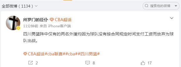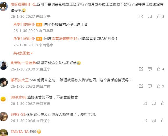 四川男籃在去年夏天,就深陷欠薪丑聞,當(dāng)時(shí)球隊(duì)本土球員集體寫聯(lián)名信控訴欠薪,且上賽季的外援也通過社媒表示他們也被欠薪。