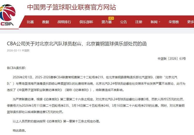 前一段時(shí)間里,趙睿在社交媒體上懟新疆球迷的事情引發(fā)了不少媒體關(guān)注和球迷熱議,很多球迷都表達(dá)了對(duì)趙睿的不滿,趙睿本人也因此進(jìn)行了道歉。針對(duì)這件事情,CBA官方對(duì)趙睿進(jìn)行了處罰,表示“趙睿在社交媒體平臺(tái)發(fā)表嚴(yán)重不當(dāng)言論,此行為違反了《中國男子籃球職業(yè)聯(lián)賽紀(jì)律準(zhǔn)則》,給聯(lián)賽造成不良影響。”為了嚴(yán)肅賽場(chǎng)紀(jì)律,CBA公司對(duì)趙睿進(jìn)行處罰:禁賽三場(chǎng)并罰款伍萬元,同時(shí)縮減北京男籃伍萬元聯(lián)賽經(jīng)費(fèi)。