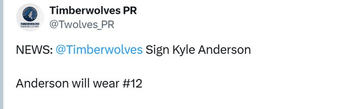 據(jù)悉,李凱爾將身披12號(hào)球衣。這樣一來(lái),李凱爾成為森林狼隊(duì)史上第一位穿過(guò)三個(gè)不同球衣號(hào)碼的球員:5號(hào)(2022-23賽季)、1號(hào)(2023-24賽季)和現(xiàn)在的12號(hào)。