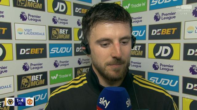 英超第15輪,曼聯(lián)客場4-1擊敗狼隊,此役打入一球的芒特賽后接受了天空體育的采訪。