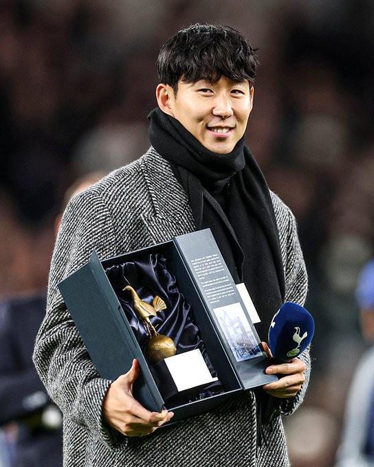 隨后,熱刺傳奇萊德利-金為孫興慜送上紀(jì)念禮物。