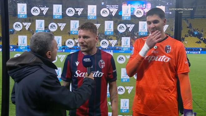 在意大利超級(jí)杯半決賽點(diǎn)球大戰(zhàn)淘汰國(guó)際米蘭成功晉級(jí)之后,博洛尼亞前鋒因莫比萊接受了來(lái)自慢鏡頭的采訪(fǎng)。