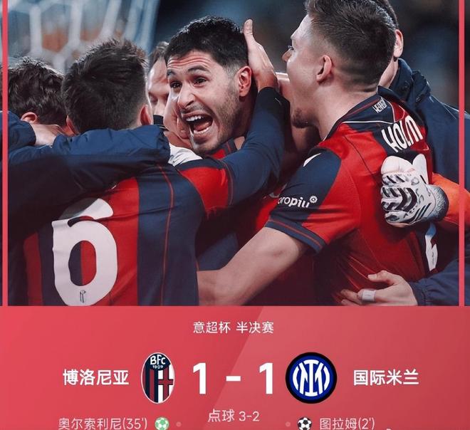 誰也沒有想到點(diǎn)球大戰(zhàn)成為了國米的噩夢,作為先罰方,勞塔羅在第一輪穩(wěn)穩(wěn)命中,為球隊(duì)開了個(gè)好頭,但第二輪登場的巴斯托尼狀態(tài)低迷,射出的點(diǎn)球綿軟無力,被對方門將輕松撲出;好在博洛尼亞的莫羅隨后也罰失點(diǎn)球,雙方回到同一起跑線。第三輪,巴雷拉的射門更是離譜,一腳高射炮將球送上看臺,而對手米蘭達(dá)竟完美復(fù)刻失誤,國米再度獲得喘息之機(jī)。