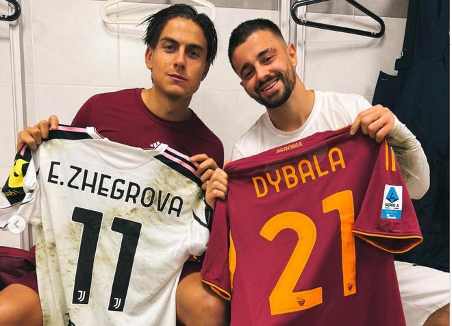 在尤文對(duì)陣羅馬的比賽結(jié)束后,熱格羅瓦與迪巴拉交換了球衣