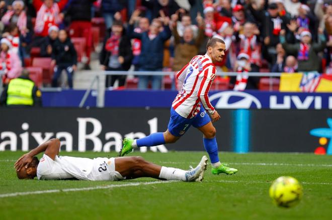 比賽的第77分鐘,西蒙尼連換3人,格列茲曼替補出場。補時第2分鐘,也就是全場比賽的最后一分鐘,林孔后場傳球失誤,格列茲曼斷球之后發(fā)動反擊,阿爾馬達分球,格列茲曼突入禁區(qū)左肋鏟射破門。