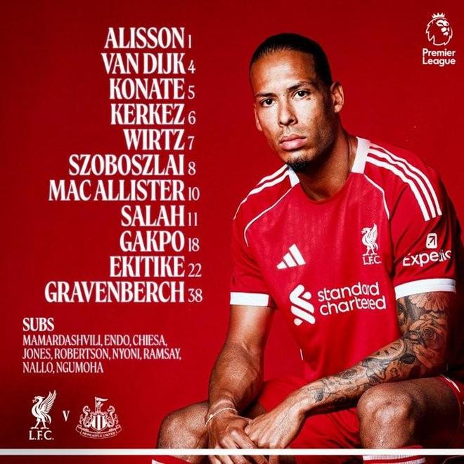 北京時間2月1日4:00,英超第24輪,利物浦主場對陣紐卡。賽前首發(fā)公布。