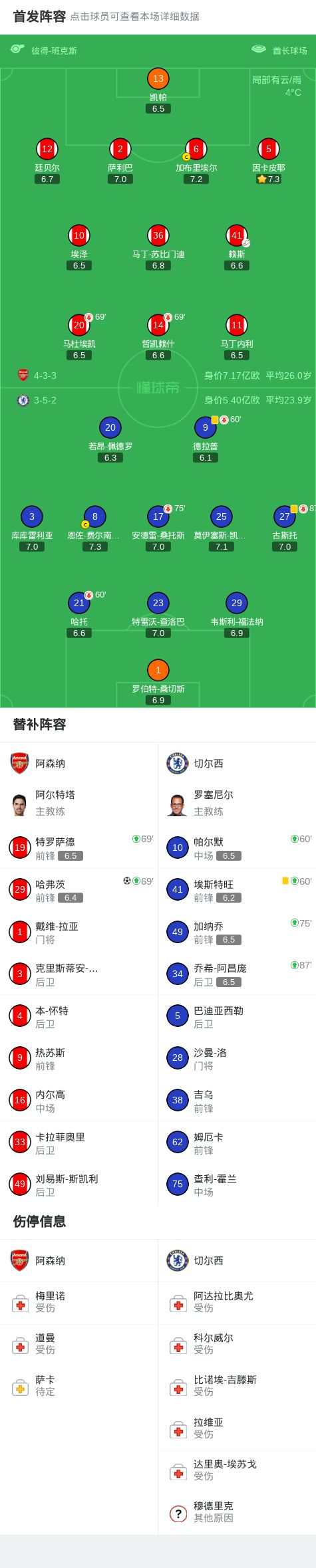 第70分鐘,哈弗茨、特羅薩德替補(bǔ)登場(chǎng),哲凱賴(lài)什、馬杜埃凱被換下