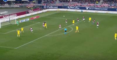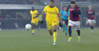 第48分鐘,博洛尼亞邊線球失誤,拉比奧斷球破門,米蘭3-0博洛尼亞