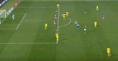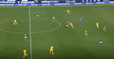 第17分鐘,差之毫厘,福法納前點(diǎn)頭球攻門擦柱而出