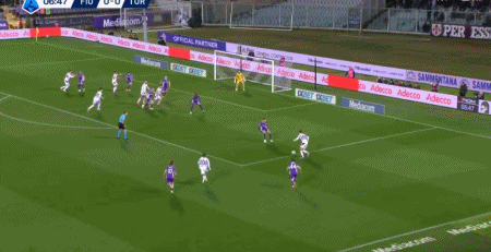 第26分鐘,伊爾克汗傳中,卡薩代伊頭球破門,都靈1-0佛羅倫薩