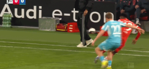 第6分鐘,普拉斯鏟倒阿方索-戴維斯,裁判出示黃牌