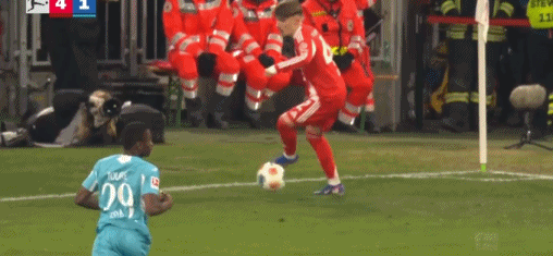 第45+2分鐘,凱恩送助攻,迪亞斯破門,拜仁3-1霍芬海姆