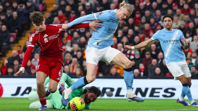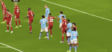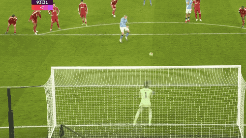 第100分鐘,利物浦大舉壓上,多納魯馬做出神撲,謝爾基本方半場傳球,索博斯洛伊拉拽哈蘭德,哈蘭德也還以顏色,皮球緩緩滾進空門。