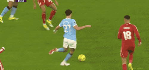 曼城的進攻一浪高過一浪,在前場的施壓,迫使利物浦頻繁丟失球權(quán)。第40分鐘,馬爾穆什的遠射力量十足,但沒能命中目標。