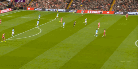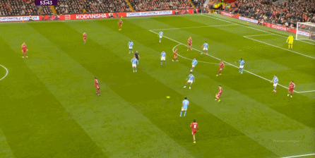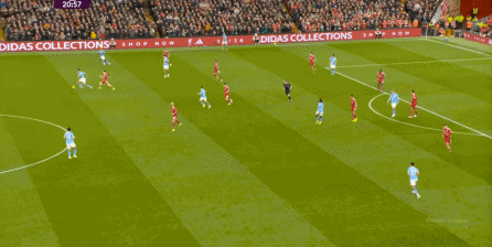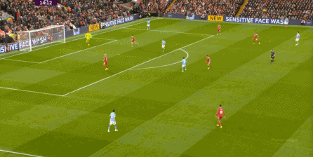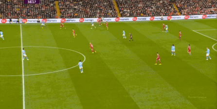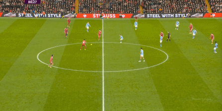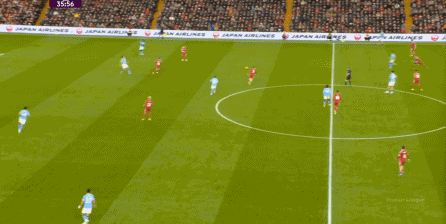 于是,在真的通過(guò)進(jìn)攻畫(huà)面調(diào)動(dòng)起場(chǎng)上的情緒之后,利物浦開(kāi)始能將壓力施加到曼城的后衛(wèi)身上了: