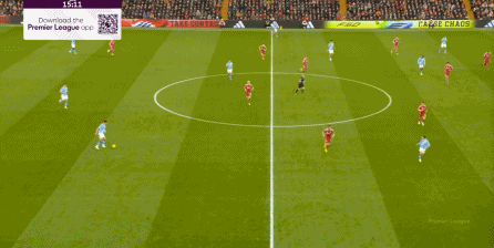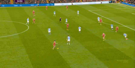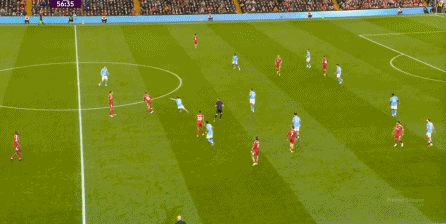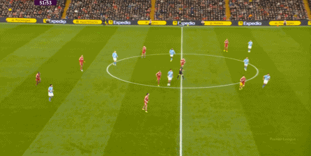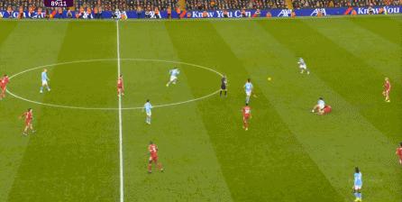 曼城則在中路持續(xù)制造著利物浦的盯人和防守空當(dāng):
