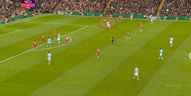 到了這個(gè)時(shí)候,有經(jīng)驗(yàn)的教練就會(huì)有所警惕了,但利物浦還在進(jìn)行高位逼搶?zhuān)M管他們可以逼迫曼城開(kāi)大腳,但大腳落到前場(chǎng),曼城有機(jī)會(huì)憑借前場(chǎng)的個(gè)人能力直接形成進(jìn)攻: