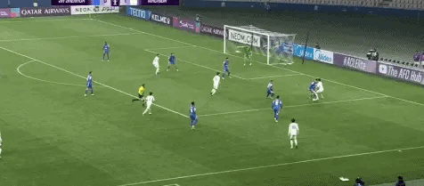 第70分鐘,相馬勇紀左肋遠射,球打在防守隊員身上形成折射,薛慶浩將球摘到。