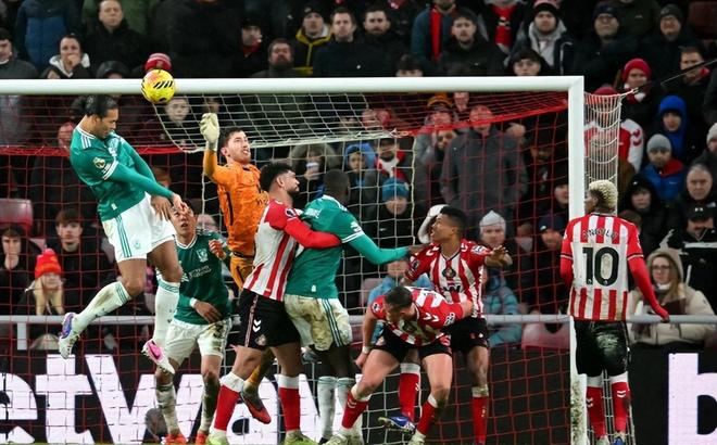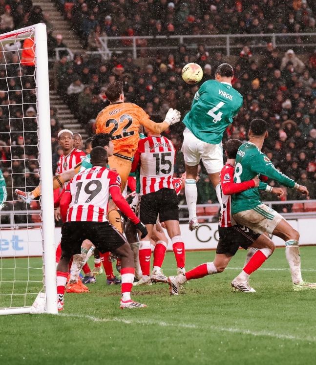 相比于前2場比賽,這場利物浦開場之后便在客場對對手形成壓制,整個上半場桑德蘭防線都受到了利物浦的連環(huán)進攻。第30分鐘,維爾茨遠射轟門,羅埃夫斯飛身救險;第32分鐘,加克波左路下底傳中,維爾茨禁區(qū)內(nèi)接球低射,皮球卻不偏不倚擊中立柱!第36分鐘,范戴克也參與到進攻當(dāng)中來了一腳射門被擋出;第38分鐘,桑德蘭防線頭球解圍失誤,維爾茨頭球吊門,羅埃夫斯反應(yīng)迅速立馬出擊將球化解。