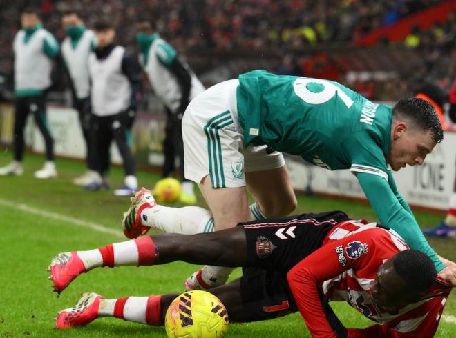 第69分鐘,遠(yuǎn)藤航受傷被換下場,喬-戈麥斯替補上場。隨后,勒費埃禁區(qū)內(nèi)手球,但裁判沒有任何表示。第75分鐘,利物浦繼續(xù)換人,加克波被換下場。瓊斯替補上場。最終,利物浦1-0險勝桑德蘭。英超爭四格局大亂,利物浦總積分達到42分,排名第6,只比第5的切爾西少2分,比第4的曼聯(lián)少3分。