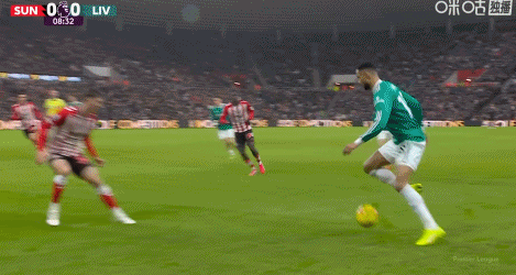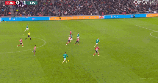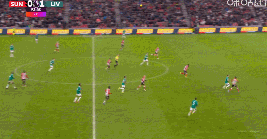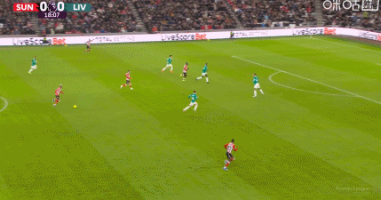第90+6分鐘,瓊斯做球,薩拉赫迎球抽射打偏