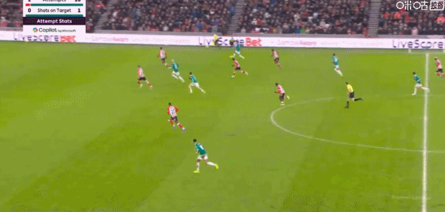 第38分鐘,桑德蘭后防失誤,維爾茨頭球被撲