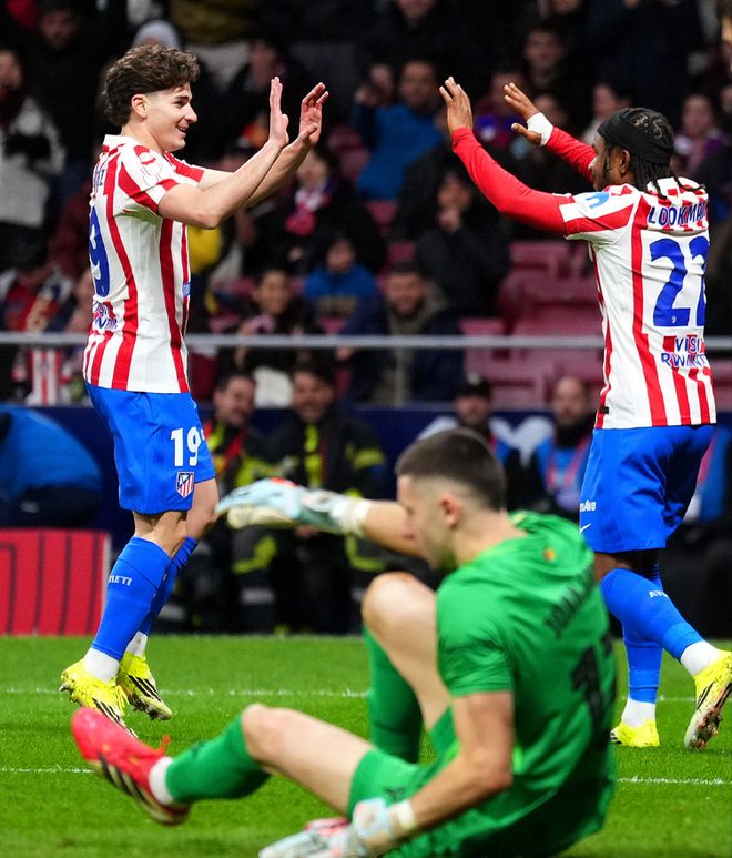 繼續(xù)猛攻的馬競(jìng),在第34分鐘再次取得進(jìn)球,阿爾瓦雷斯禁區(qū)內(nèi)接到隊(duì)友倒三角傳中后,無(wú)私分給了左路位置更好的盧克曼,后者輕松推射建功,將比分改寫為了3-0,半場(chǎng)比賽結(jié)束之前,阿爾瓦雷斯大禁區(qū)線附近大力抽射,終結(jié)了連續(xù)11場(chǎng)的進(jìn)球荒,幫助馬競(jìng)帶著4-0的比分,回到了中場(chǎng)更衣室。