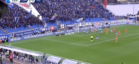 第14分鐘,佛羅倫薩角球發(fā)出,拉涅利頭球頂偏