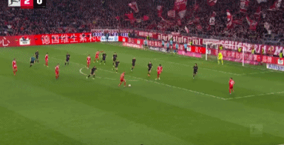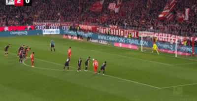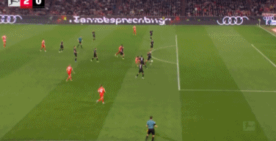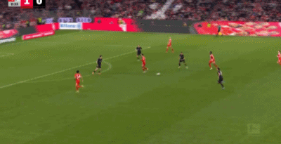 第32分鐘,格雷茨卡挑傳,迪亞斯凌空抽射破門,拜仁1-0門興