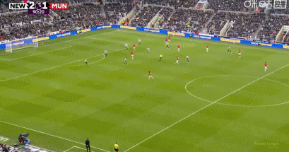 在英超第29輪紐卡斯?fàn)柭?lián)vs曼聯(lián)的比賽中,上半場雙方戰(zhàn)成1-1平。下半場臨近傷停補(bǔ)時,紐卡前鋒奧蘇拉在本方后場斷球,回敲給特里皮爾后,果斷前插。奧蘇拉后沿右路長途奔襲,內(nèi)切連續(xù)晃過兩名曼聯(lián)球員后找到角度,兜射遠(yuǎn)角破門,讓拉門斯無可奈何。